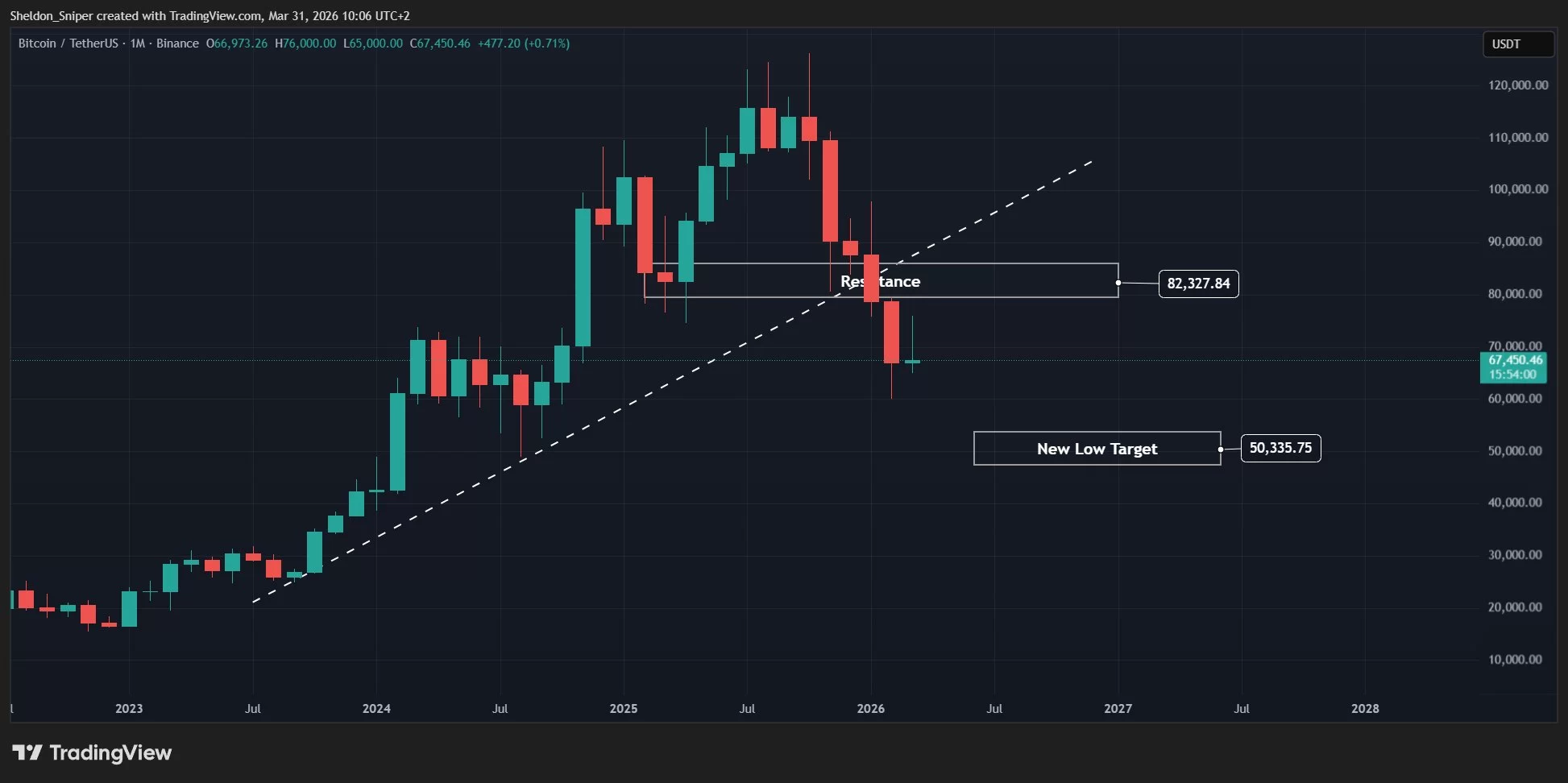 Sheldon Diedericks destacó que el próximo cierre mensual podría establecer una tendencia alcista en el gráfico de Bitcoin. Su proyección sugiere que Bitcoin podría avanzar hacia la zona de resistencia alrededor de $83,000 durante abril. Sin embargo, también advirtió que una vez que se pruebe este nivel de resistencia, Bitcoin podría enfrentar una renovada presión vendedora y la potencialidad de una caída más pronunciada. Esta perspectiva refleja las opiniones de otros observadores del mercado, como los de Roman Trading, quienes prevén un repunte interino antes de que el mercado posiblemente busque niveles de soporte más bajos.