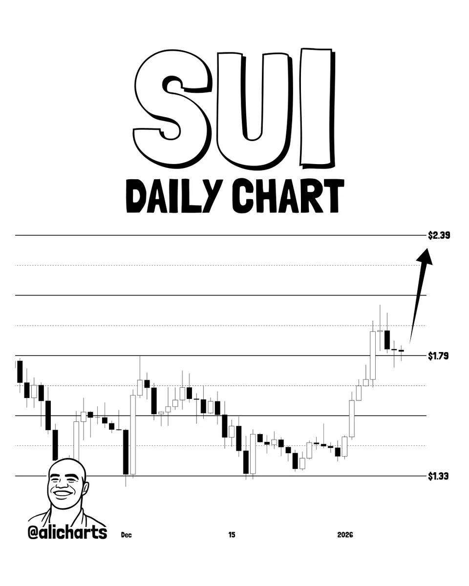 Mientras que Ali Martinez ha pronosticado caídas para varias criptomonedas, se mantiene optimista con respecto a SUI Coin. Según su gráfico compartido, si el nivel de $1.79 se mantiene, podría potencialmente probar $2.39.