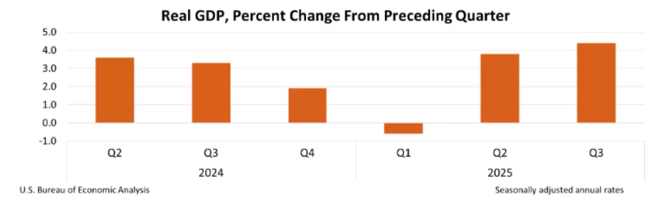 La Oficina de Análisis Económico de EE.UU. ha publicado los tan esperados datos del PIB. Este informe, retrasado debido a un cierre del gobierno, se alinea con las proyecciones optimistas de crecimiento del Presidente Trump para el año. Simultáneamente con la publicación del PIB, también se publicaron los datos de solicitudes de desempleo. Todas las miradas están ahora en los números del PCE que se revelarán a las 18:00.
