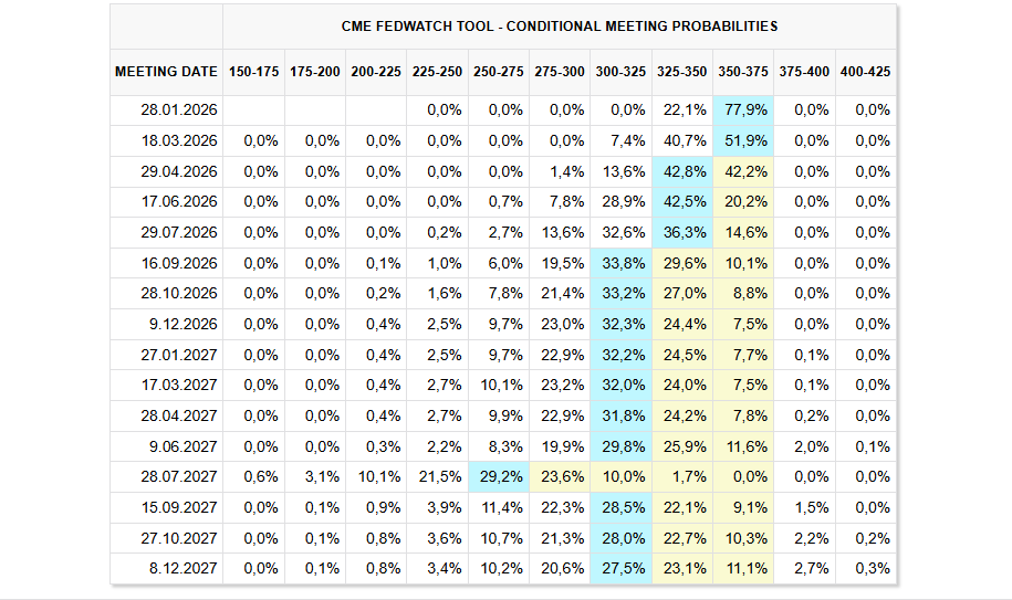 La primera decisión sobre la tasa de interés de 2026 está programada para el 28 de enero, momento en el cual se habrán publicado varios datos cruciales desde el empleo hasta la inflación. Actualmente, existe una expectativa del 77% de que las tasas se mantendrán estables en enero. Sin embargo, si el empleo se reduce aún más y el crecimiento limitado de la inflación indica una relajación, podrían ocurrir más recortes en los próximos 12 meses. Este escenario puede impactar positivamente en los mercados de riesgo, incluidas las criptomonedas.