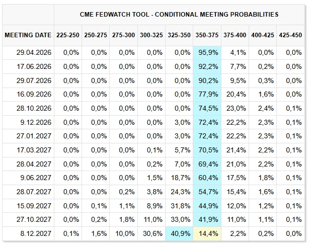 Esta semana también marcará el fin de una ventana de seis semanas vista como un punto de inflexión para evaluar la duración de los conflictos en curso y sus repercusiones económicas. Se espera que el presidente de la Reserva Federal de EE.UU., Jerome Powell, discuta temas económicos clave, mientras que las últimas lecturas de la herramienta CME FedWatch sugieren que el primer recorte de tasas de interés con una alta probabilidad—más del 80% según la valoración del mercado—podría no materializarse hasta la reunión del 8 de diciembre de 2027. Hasta entonces, la posibilidad de otro aumento de tasas antes de fin de año permanece, alimentando la incertidumbre y la sensibilidad del mercado a las comunicaciones del banco central.