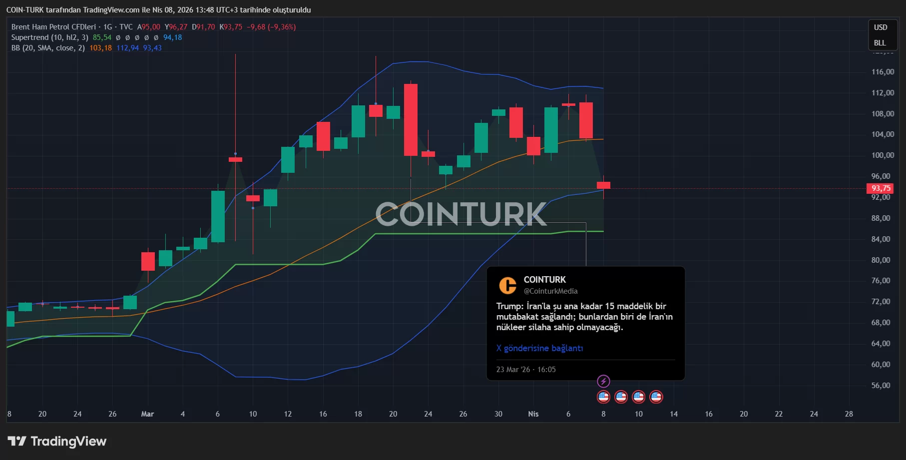 Aproximadamente 90 minutos antes de las 3:00 a.m., el ex presidente de EE. UU. Donald Trump anunció que se había alcanzado un acuerdo de alto al fuego, lo que provocó una rápida caída en los precios del petróleo. Con la apertura de los mercados, los precios del petróleo cayeron por debajo de $93, aliviando los temores de los inversores y calmando los mercados globales. Los desarrollos recientes han planteado preguntas significativas sobre cómo el alto al fuego podría impactar el mercado de las criptomonedas en el futuro.